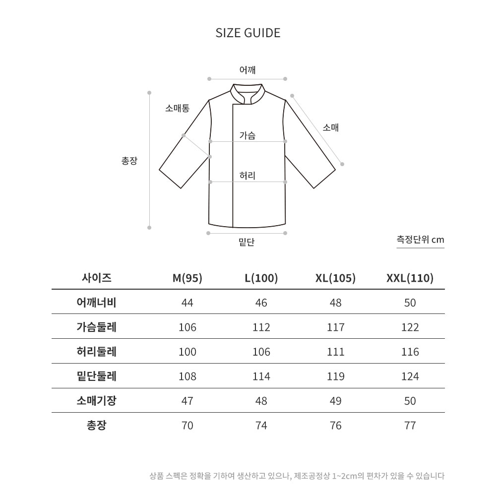 칠부 조리복 남녀공용