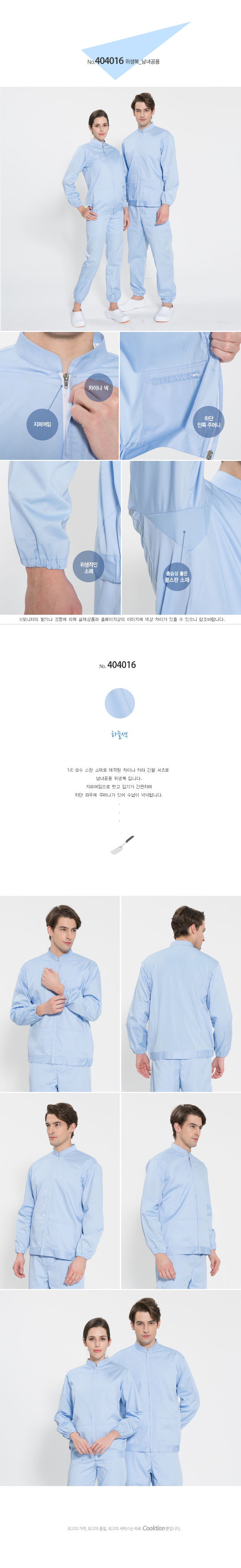 위생복 긴팔 지퍼형 남녀공용