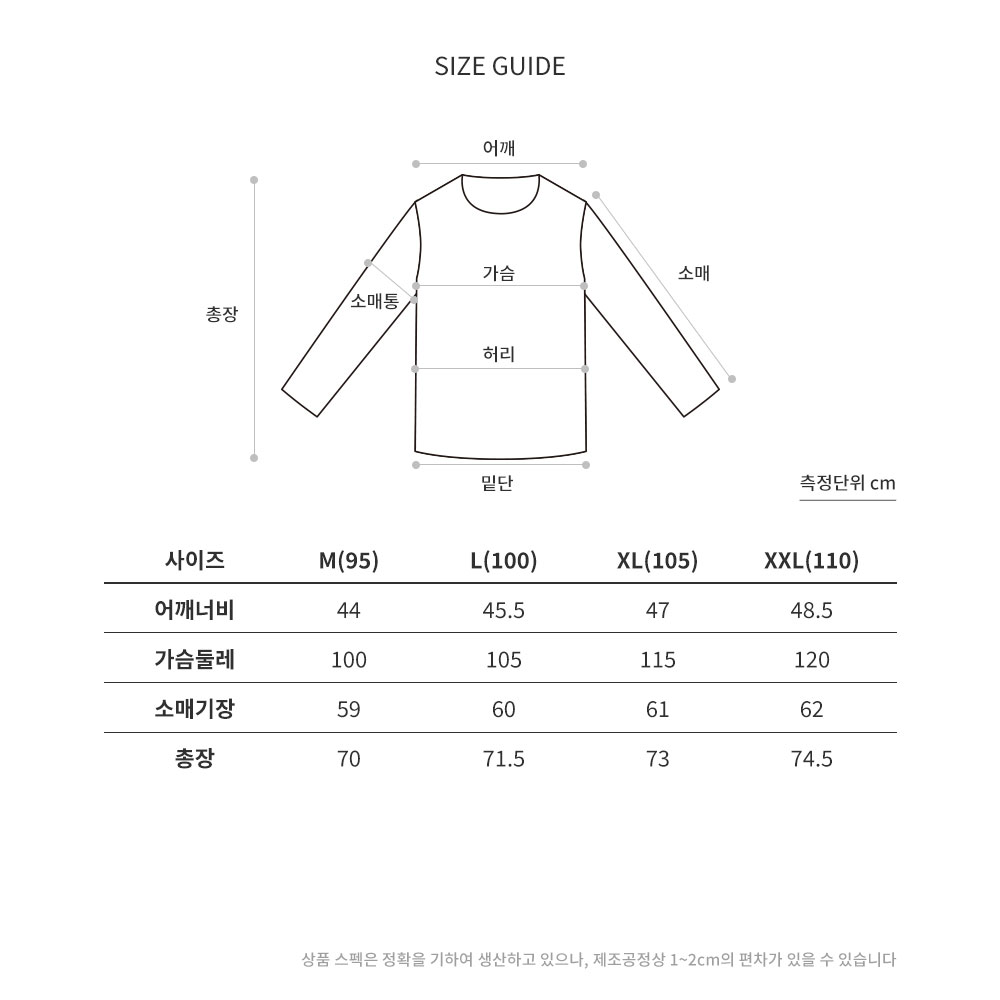• 형태 - 긴팔 / 남성용