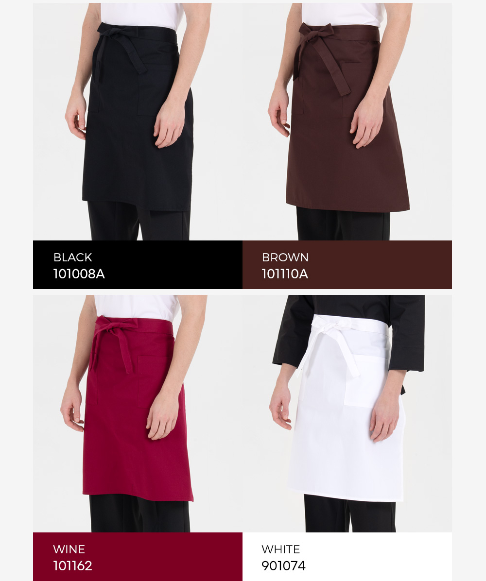 허리 앞치마는 블랙, 브라운, 와인, 화이트 4가지 색상으로 구성되어 취향에 맞게 선택할 수 있습니다.