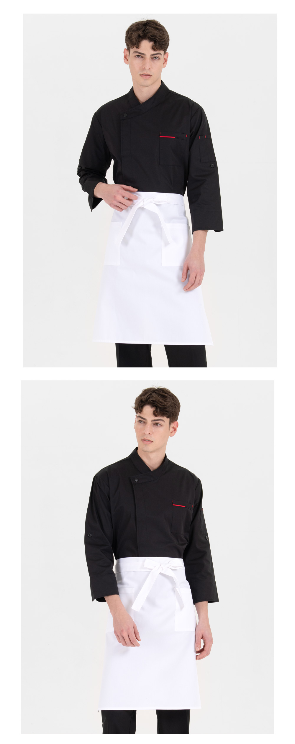 상체를 덮지 않는 오픈형 구조로 답답함이 적고, 서빙·조리·작업 등 활동량이 많은 환경에서도 편안합니다.